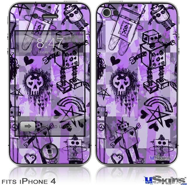 iPhone 4 Decal Style Vinyl Skin - Scene Kid Sketches Purple (DOES NOT fit newer iPhone 4S)