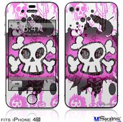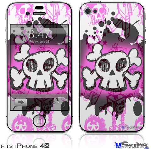 iPhone 4S Decal Style Vinyl Skin - Cartoon Skull Pink