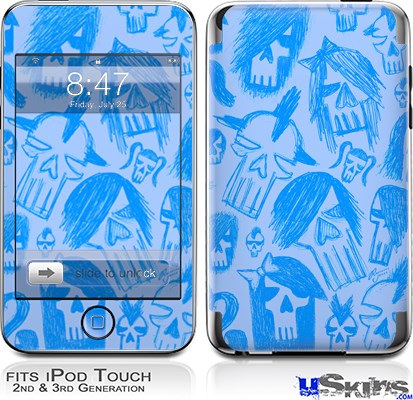 iPod Touch 2G & 3G Skin - Skull Sketches Blue