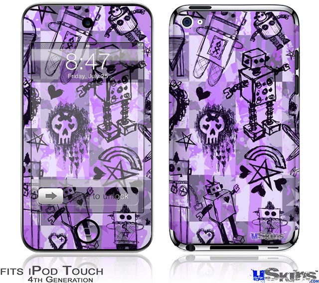 iPod Touch 4G Decal Style Vinyl Skin - Scene Kid Sketches Purple