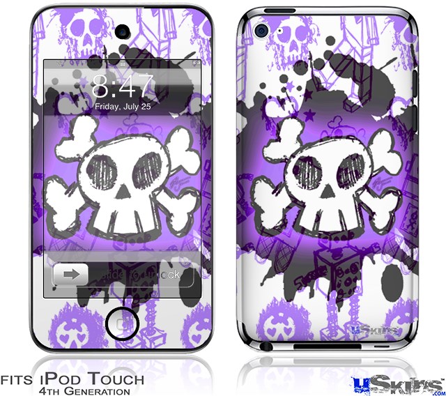iPod Touch 4G Decal Style Vinyl Skin - Cartoon Skull Purple