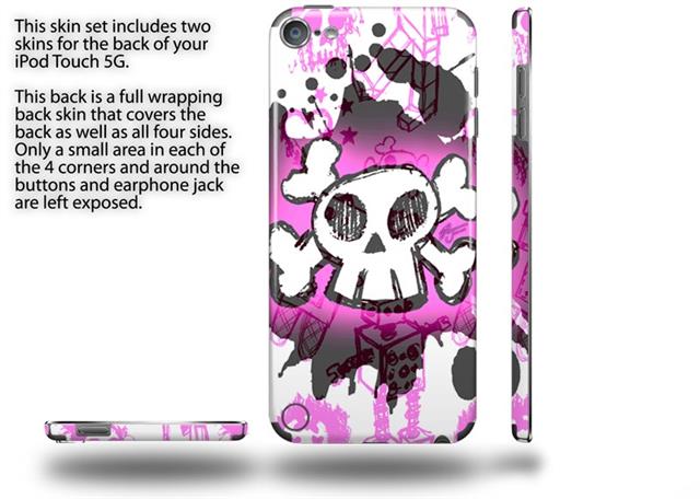 Cartoon Skull Pink Decal Style Vinyl Skin - fits Apple iPod Touch 5G (IPOD NOT INCLUDED)
