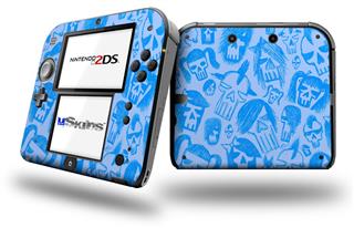Skull Sketches Blue - Decal Style Vinyl Skin fits Nintendo 2DS - 2DS NOT INCLUDED