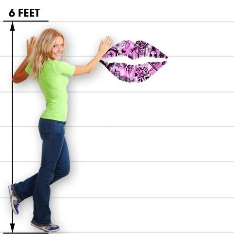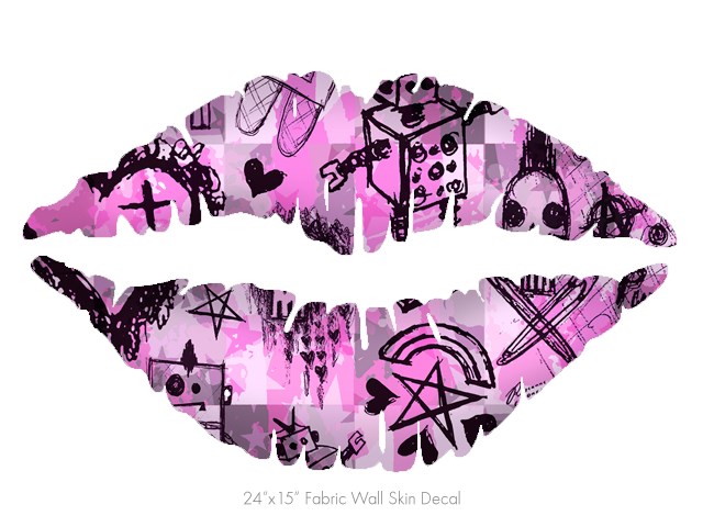 Scene Kid Sketches Pink - Kissing Lips Fabric Wall Skin Decal measures 24x15 inches