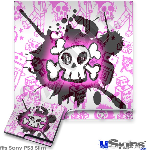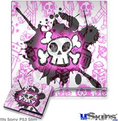 Decal Skin compatible with Sony PS3 Slim Cartoon Skull Pink