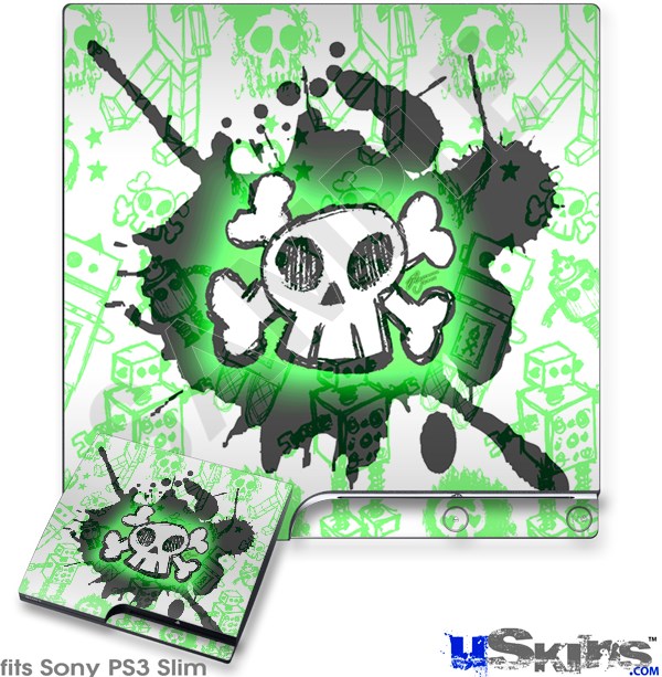 Decal Skin compatible with Sony PS3 Slim Cartoon Skull Green