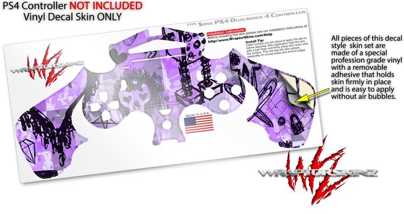 WraptorSkinz Skin compatible with Sony PS4 Dualshock Controller PlayStation 4 Original Slim and Pro Scene Kid Sketches Purple (CONTROLLER NOT INCLUDED)