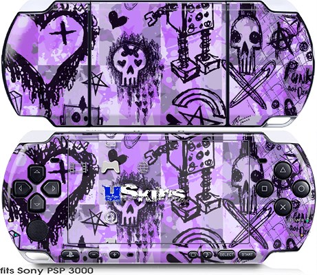 Sony PSP 3000 Skin - Scene Kid Sketches Purple