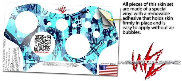 XBOX 360 Wireless Controller Decal Style Skin - Scene Kid Sketches Blue (CONTROLLER NOT INCLUDED)