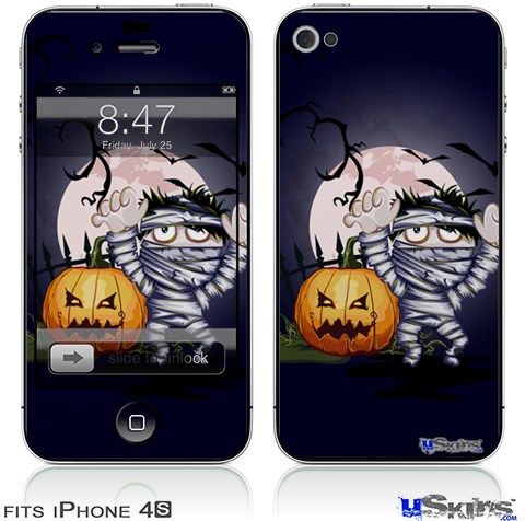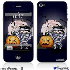iPhone 4S Decal Style Vinyl Skin - Halloween Jack O Lantern Pumpkin Bats and Zombie Mummy
