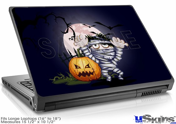 Laptop Skin (Large) - Halloween Jack O Lantern Pumpkin Bats and Zombie Mummy