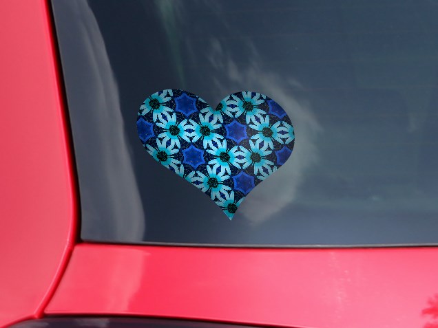 Daisies Blue - I Heart Love Car Window Decal 6.5 x 5.5 inches