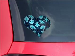 Abstract Floral Blue - I Heart Love Car Window Decal 6.5 x 5.5 inches