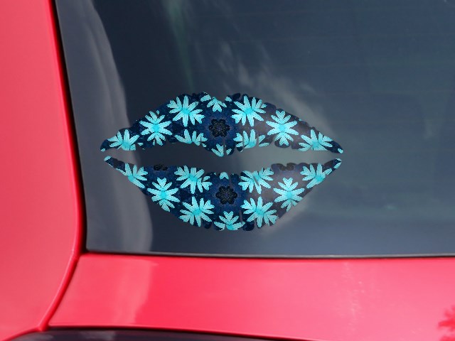 Lips Decal 9x5.5 Abstract Floral Blue