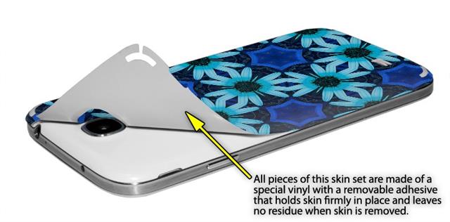 • Decal style vinyl skin covers front and back of Samsung Galaxy S4 phone.