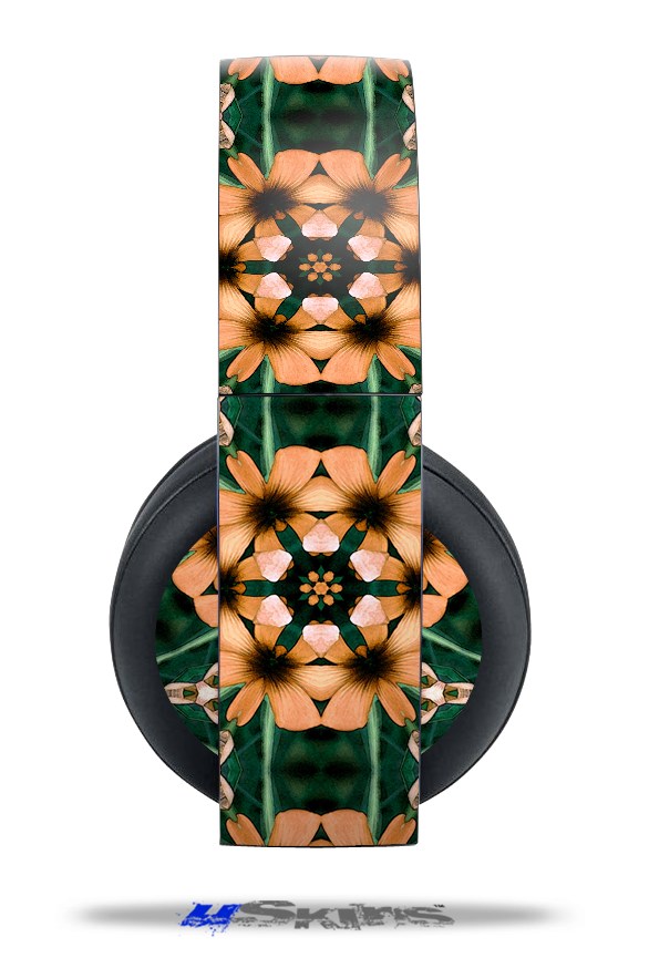 Vinyl Decal Skin Wrap compatible with Original Sony PlayStation 4 Gold Wireless Headphones Floral Pattern Orange (PS4 HEADPHONES  NOT INCLUDED)