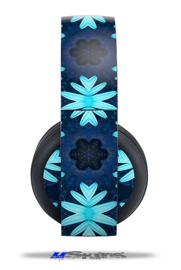Vinyl Decal Skin Wrap compatible with Original Sony PlayStation 4 Gold Wireless Headphones Abstract Floral Blue (PS4 HEADPHONES  NOT INCLUDED)