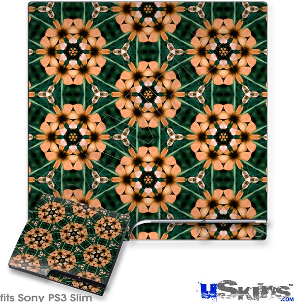 Decal Skin compatible with Sony PS3 Slim Floral Pattern Orange
