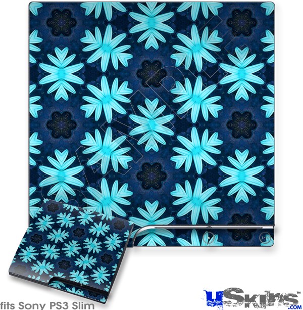 Decal Skin compatible with Sony PS3 Slim Abstract Floral Blue