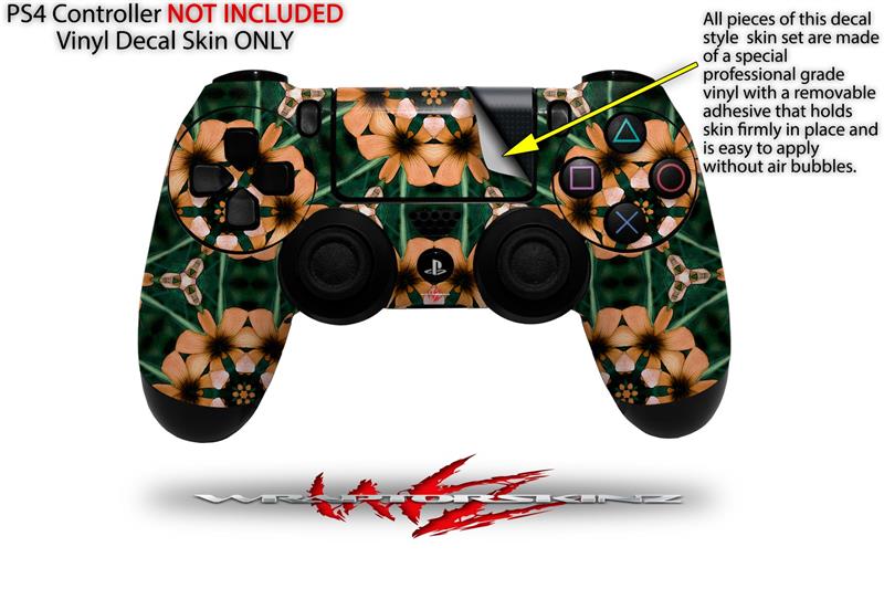 WraptorSkinz Skin compatible with Sony PS4 Dualshock Controller PlayStation 4 Original Slim and Pro Floral Pattern Orange (CONTROLLER NOT INCLUDED)