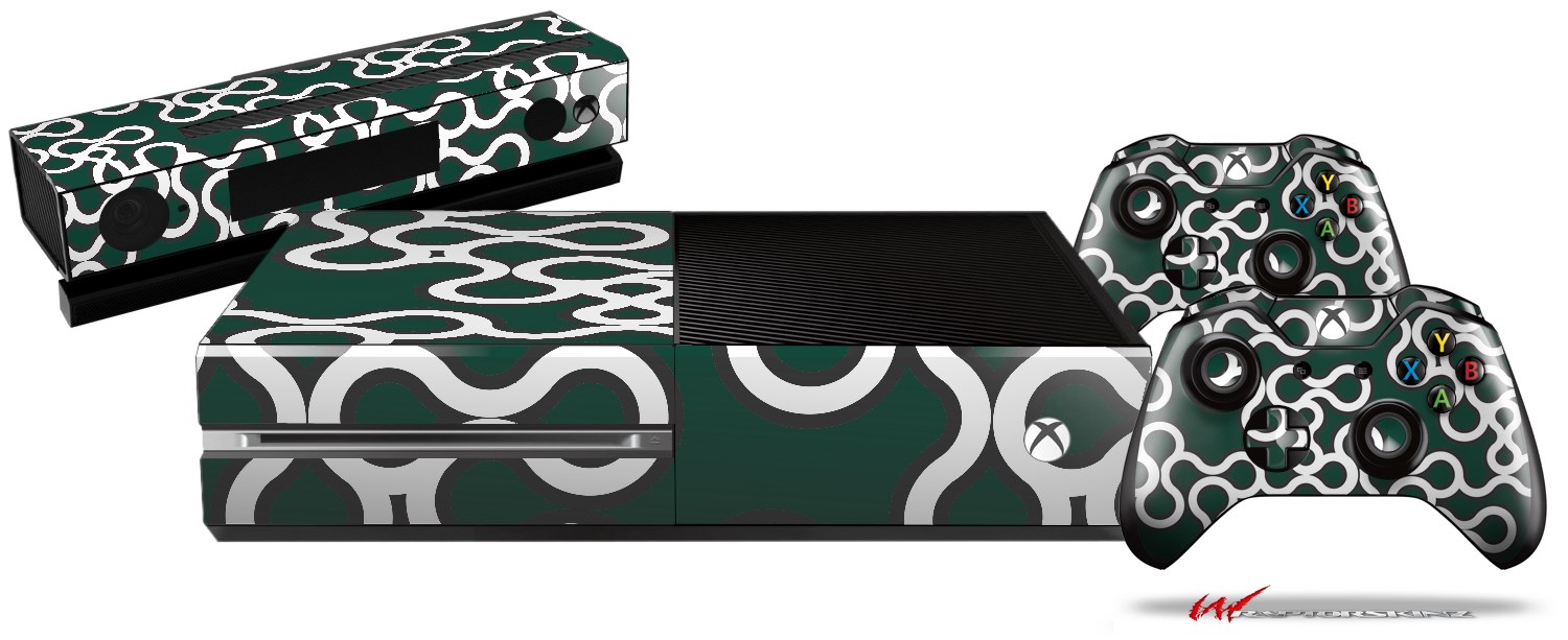 Locknodes 03 Hunter Green - Holiday Bundle Decal Style Skin fits XBOX One Console Original, Kinect and 2 Controllers (XBOX SYSTEM NOT INCLUDED)