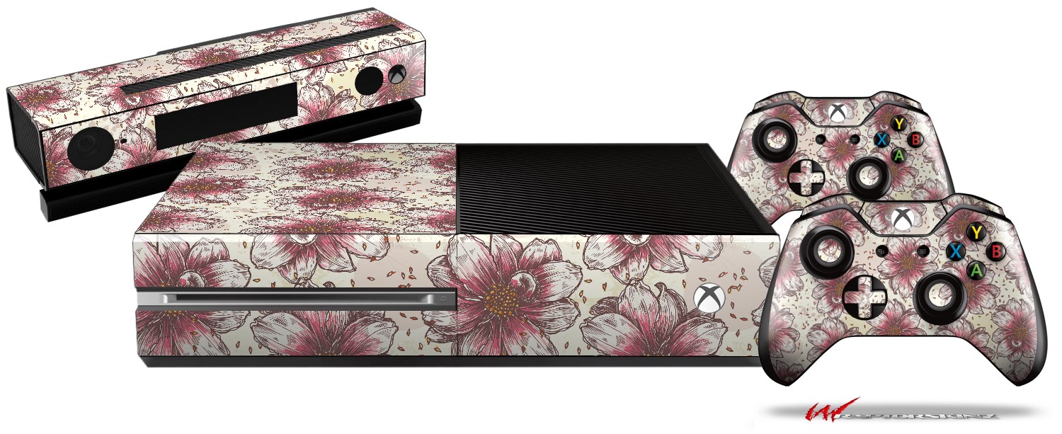 Flowers Pattern 23 - Holiday Bundle Decal Style Skin fits XBOX One Console Original, Kinect and 2 Controllers (XBOX SYSTEM NOT INCLUDED)