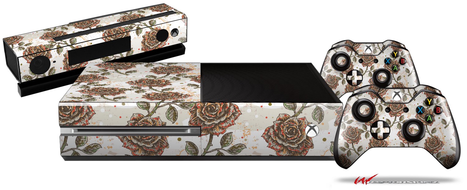 Flowers Pattern Roses 20 - Holiday Bundle Decal Style Skin fits XBOX One Console Original, Kinect and 2 Controllers (XBOX SYSTEM NOT INCLUDED)