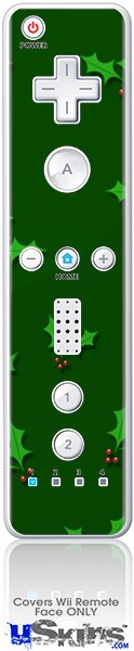 Wii Remote Controller Face ONLY Skin - Holly Leaves on Green