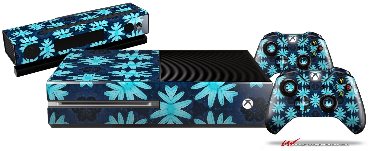 Abstract Floral Blue - Holiday Bundle Decal Style Skin fits XBOX One Console Original, Kinect and 2 Controllers (XBOX SYSTEM NOT INCLUDED)