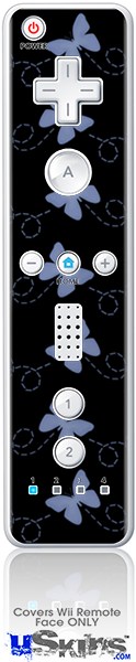 Wii Remote Controller Face ONLY Skin - Pastel Butterflies Blue on Black