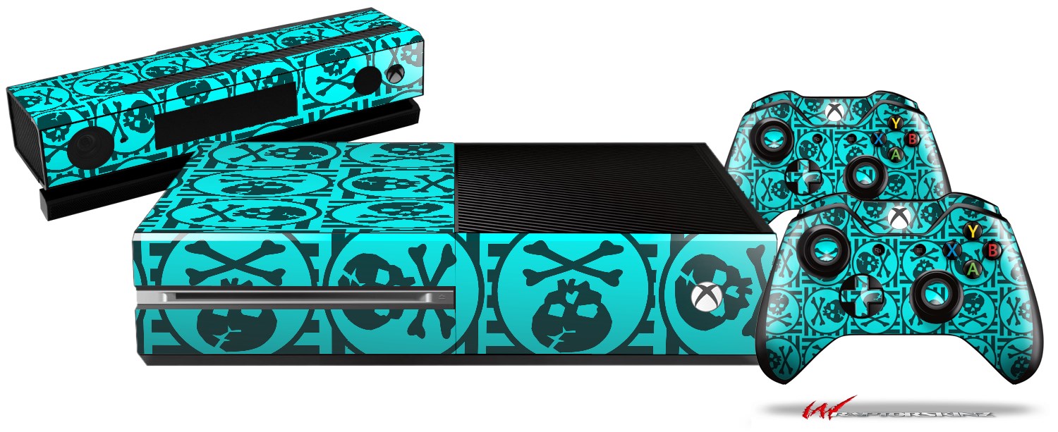 Skull Patch Pattern Blue - Holiday Bundle Decal Style Skin fits XBOX One Console Original, Kinect and 2 Controllers (XBOX SYSTEM NOT INCLUDED)