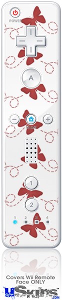 Wii Remote Controller Face ONLY Skin - Pastel Butterflies Red on White