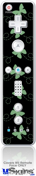 Wii Remote Controller Face ONLY Skin - Pastel Butterflies Green on Black