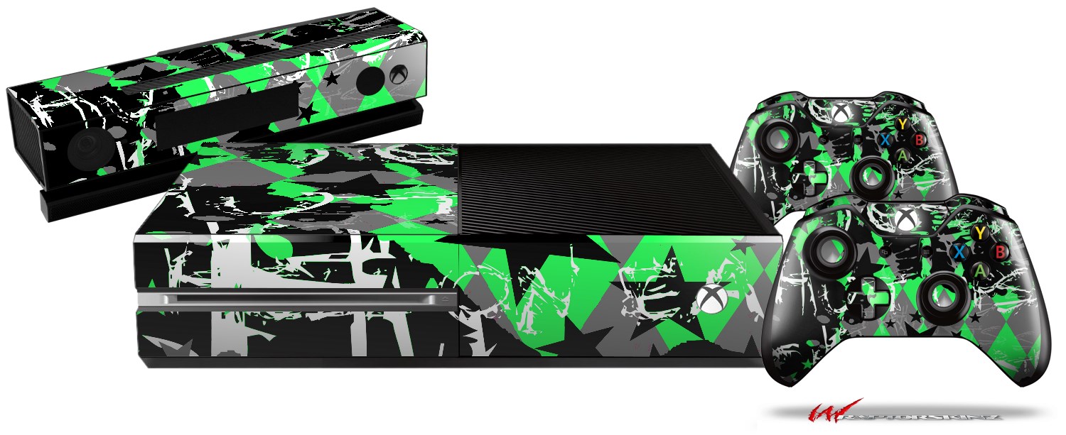 SceneKid Green - Holiday Bundle Decal Style Skin fits XBOX One Console Original, Kinect and 2 Controllers (XBOX SYSTEM NOT INCLUDED)