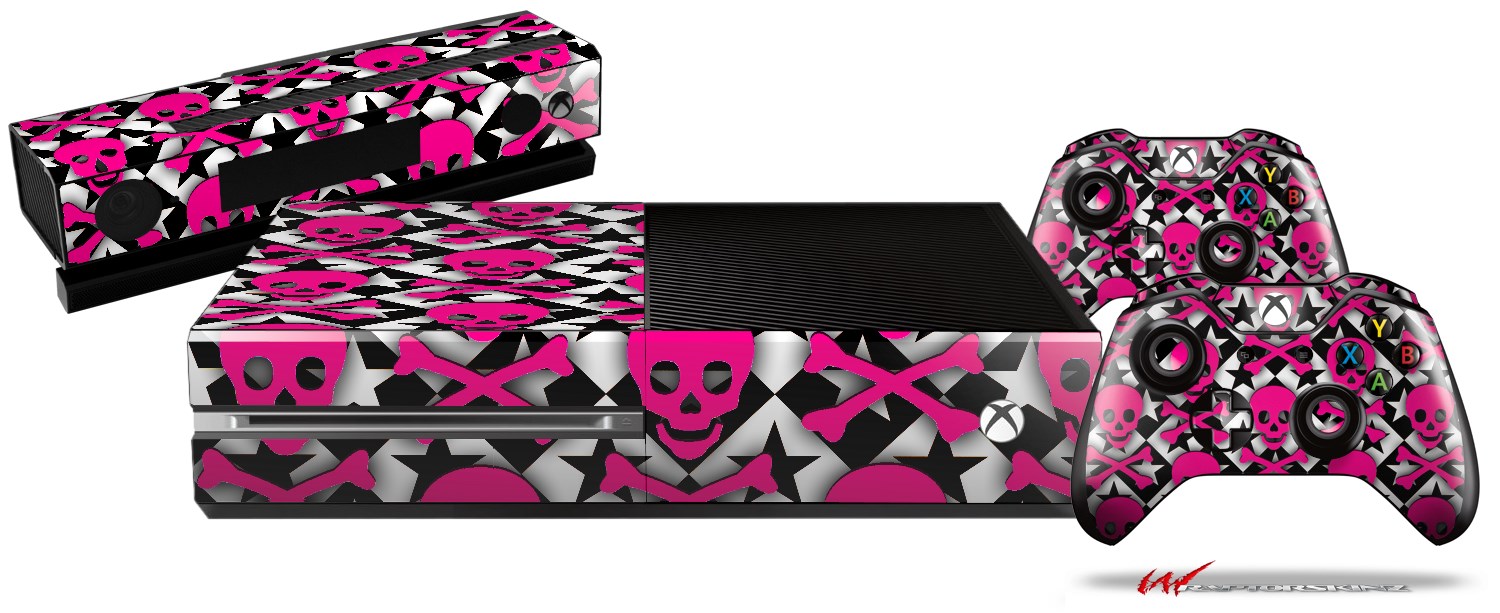 Pink Skulls and Stars - Holiday Bundle Decal Style Skin fits XBOX One Console Original, Kinect and 2 Controllers (XBOX SYSTEM NOT INCLUDED)
