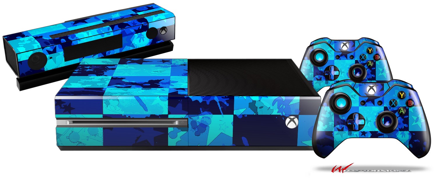 Blue Star Checkers - Holiday Bundle Decal Style Skin fits XBOX One Console Original, Kinect and 2 Controllers (XBOX SYSTEM NOT INCLUDED)