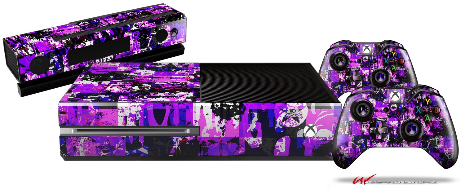 Purple Graffiti - Holiday Bundle Decal Style Skin fits XBOX One Console Original, Kinect and 2 Controllers (XBOX SYSTEM NOT INCLUDED)