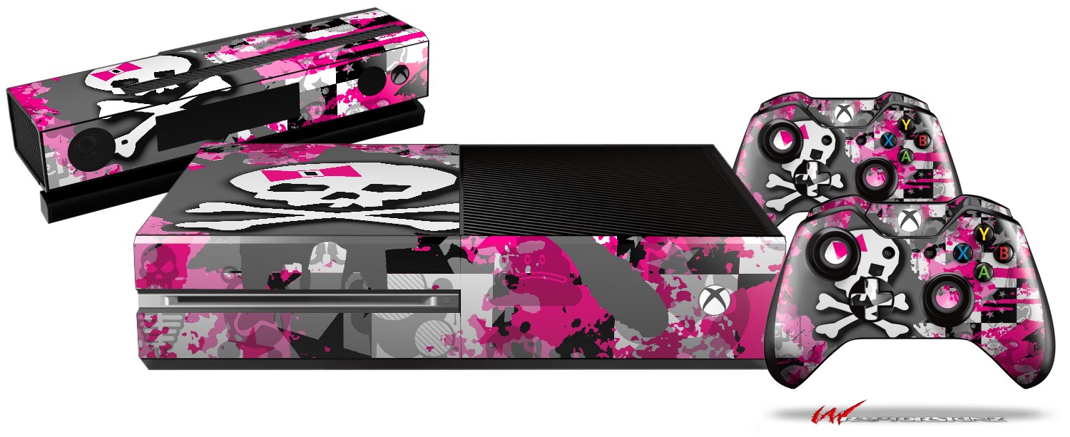 Girly Pink Bow Skull - Holiday Bundle Decal Style Skin fits XBOX One Console Original, Kinect and 2 Controllers (XBOX SYSTEM NOT INCLUDED)