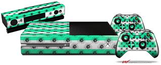 Kearas Daisies Stripe Sea Foam - Holiday Bundle Decal Style Skin fits XBOX One Console Original, Kinect and 2 Controllers (XBOX SYSTEM NOT INCLUDED)