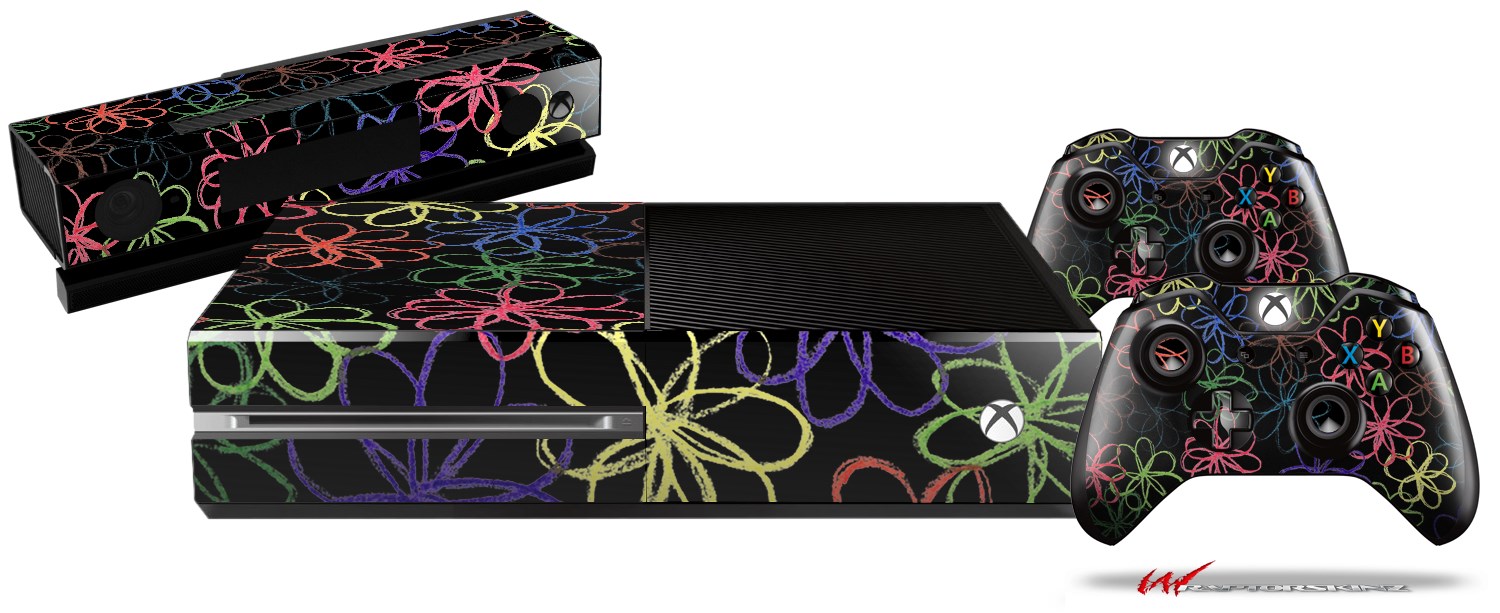 Kearas Flowers on Black - Holiday Bundle Decal Style Skin fits XBOX One Console Original, Kinect and 2 Controllers (XBOX SYSTEM NOT INCLUDED)