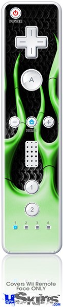 Wii Remote Controller Face ONLY Skin - Metal Flames Green