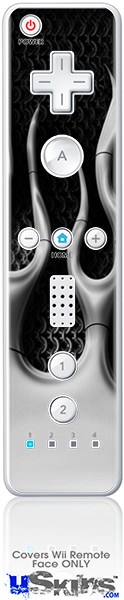 Wii Remote Controller Face ONLY Skin - Metal Flames Chrome