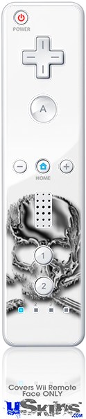 Wii Remote Controller Face ONLY Skin - Chrome Skull on White