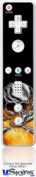 Wii Remote Controller Face ONLY Skin - Chrome Skull on Fire