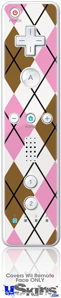 Wii Remote Controller Face ONLY Skin - Argyle Pink and Brown