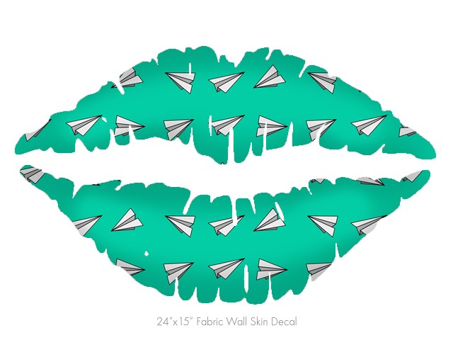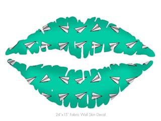 Paper Planes Turquoise - Kissing Lips Fabric Wall Skin Decal measures 24x15 inches