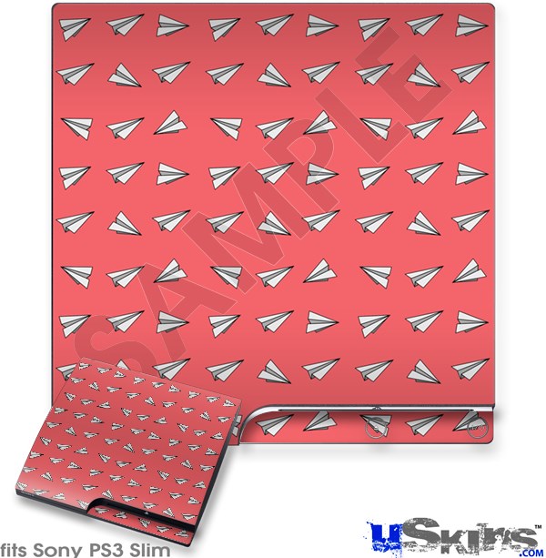 Decal Skin compatible with Sony PS3 Slim Paper Planes Coral