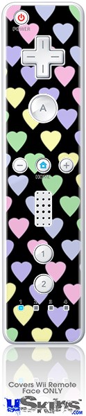 Wii Remote Controller Face ONLY Skin - Pastel Hearts on Black