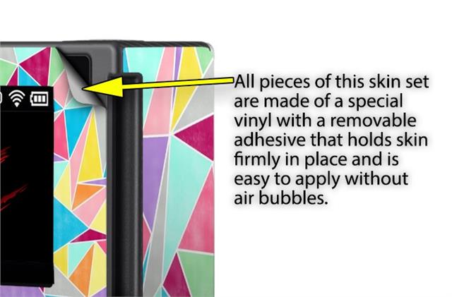 WraptoSkinz™ skins are superb photo quality designs and vibrant colors printed with special Eco-Friendly, fade resistant inks. Our skins are self-adhering flexible vinyl skins that helps prevent scratches. Made of composite, multi-layered commercial grade materials. The bottom layer is made with a special removable adhesive that is easily positioned and applied without air bubbles. We print your design on the bottom layer then bond a professional grade laminate over the entire skin adding a glossy protective finish.