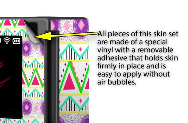 WraptoSkinz™ skins are superb photo quality designs and vibrant colors printed with special Eco-Friendly, fade resistant inks. Our skins are self-adhering flexible vinyl skins that helps prevent scratches. Made of composite, multi-layered commercial grade materials. The bottom layer is made with a special removable adhesive that is easily positioned and applied without air bubbles. We print your design on the bottom layer then bond a professional grade laminate over the entire skin adding a glossy protective finish.